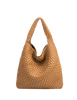 Woven from recycled vegan leather, the Johanna tote bag not only offers plenty of room for all your essential belongings but is also made of 40% post-consumer recycled polyester and 18% post-consumer recycled vegan leather. Making it chic and better for the environment.