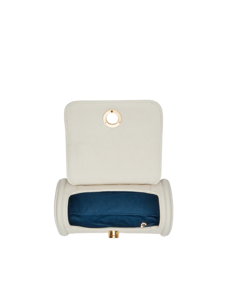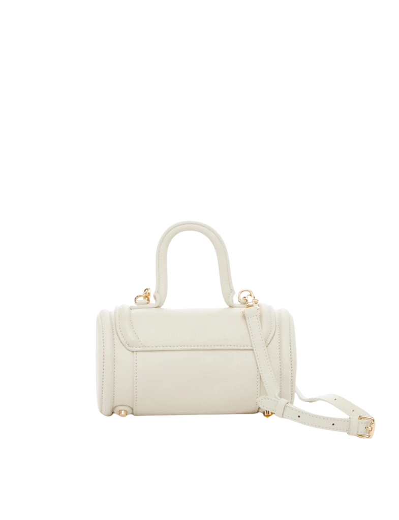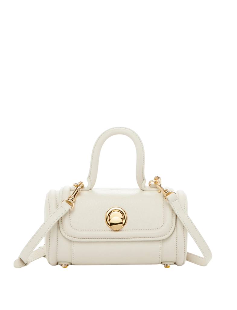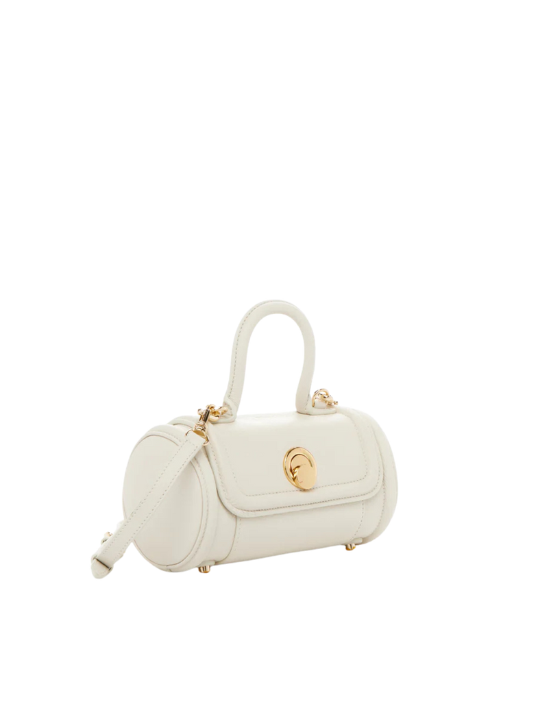 Add timeless elegance to your wardrobe with this cream leather cylinder bag, a mini crossbody and top handle handbag designed for modern women. Made from luxurious pebbled leather, this structured purse features a distinctive barrel-shaped silhouette, combining sophistication with everyday practicality.