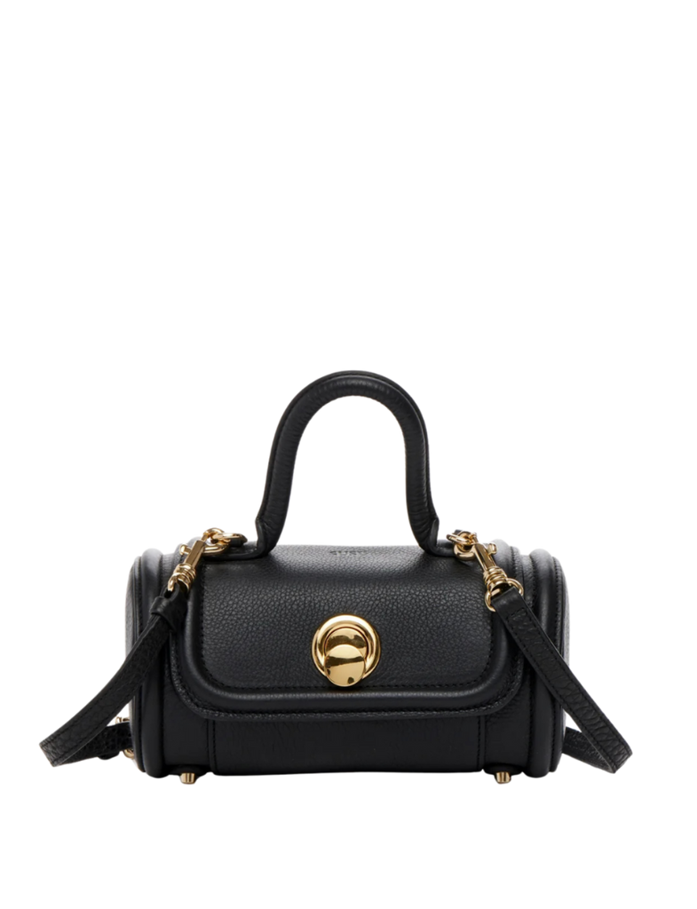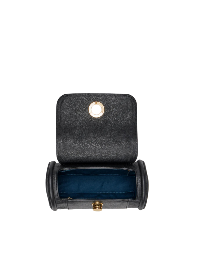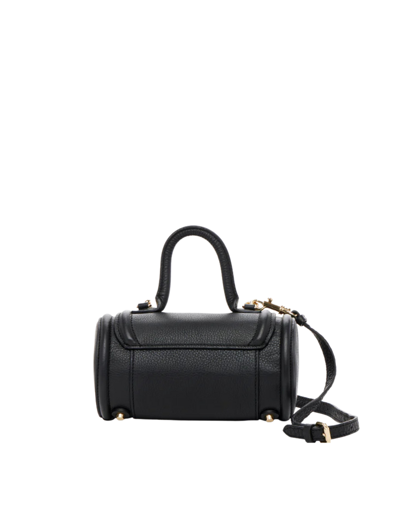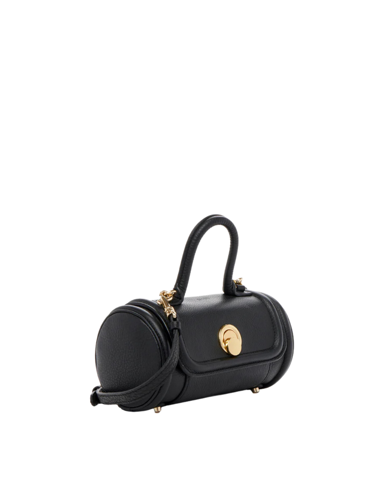 Elevate your style with this black leather cylinder bag, a versatile crossbody and top handle handbag designed for modern women. Crafted from premium pebbled leather, this mini purse features a unique barrel-shaped silhouette that stands out from classic bags.