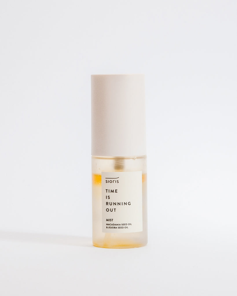 Sioris Time Is Running Out Mist is biphasic, constituting of an oil layer and water layer that combine to provide mega moisturization. This product mixes the effects of a toner, mist, and serum in one. The oil layer is made of three plant oils (macadamia seed oil, jojoba seed oil, and sunflower seed oil) to provide more long-lasting nourishment and hydration, devoid of any greasiness. Together they transform dry skin to smooth skin. The water layer has 79% organic plum water to deliver immediate moisturization to dry skin. Yuzu water also delivers antioxidant protection, which can aid to reduce the display of aging and reinvigorate skin for a more healthier appearance.