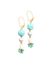 18k gold plated brass hooks with vintage pressed glass and faceted glass beads. Each earring weighs .13 oz. and measures 2.5 inches in length from top to bottom.
