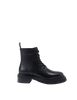 Lace-up derby ankle boot made of black printed calf leather, with oversized rubber sole.