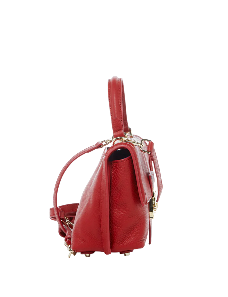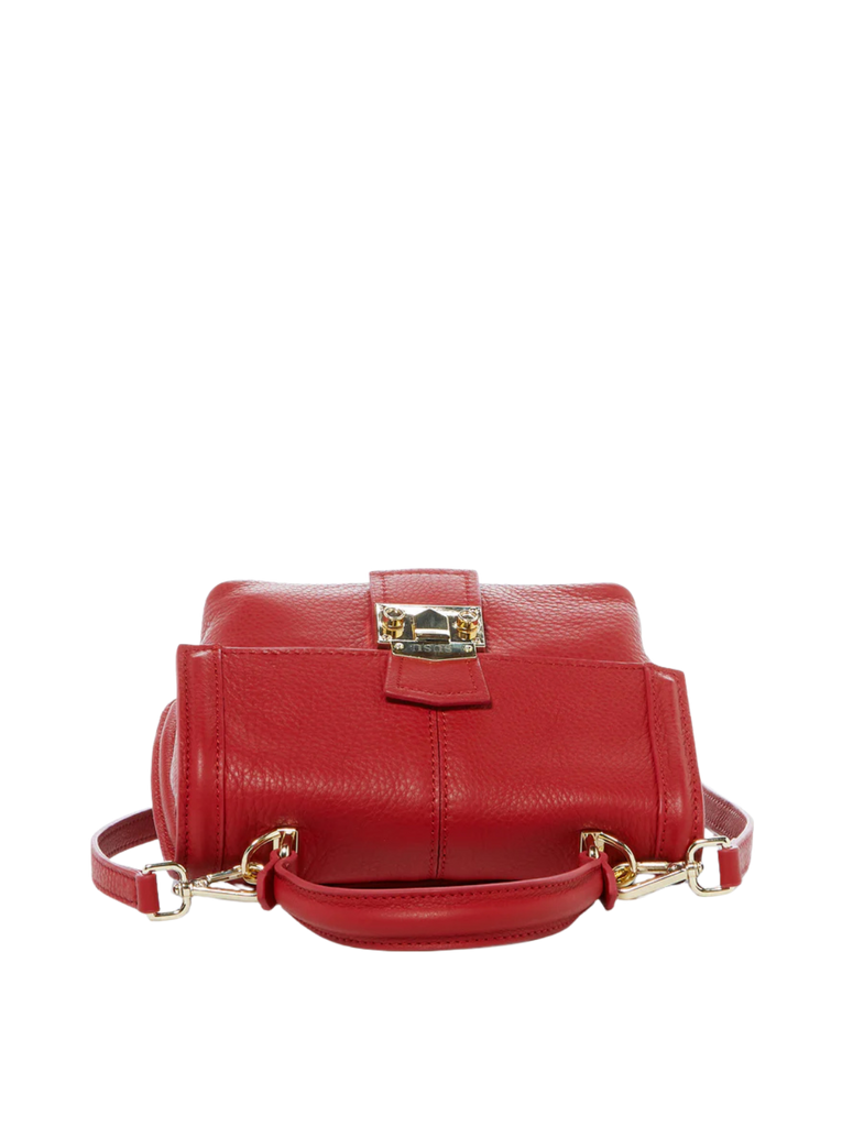 The Linda is a crossbody design that has been leveled up with the ability to convert into a backpack. This makes the Linda perfect for adapting to needs when traveling, texting and being out and about in the cold winter. This posh fashion red leather backpack purse features a traditional purse shape and comfortable straps. Additionally, it has a top handle if you prefer to carry it that way. Composed of soft, rich red Italian pebble leather, the Linda is simple and effortlessly stylish. The gold push buckle lock is made with two strong magnets for extra security and helps keep the flap structured and in place is complemented by classy gold hardware. This chic addition to your wardrobe will make you feel confident - whether you’re in need of a leather crossbody bag or a leather backpack purse to take on your day.