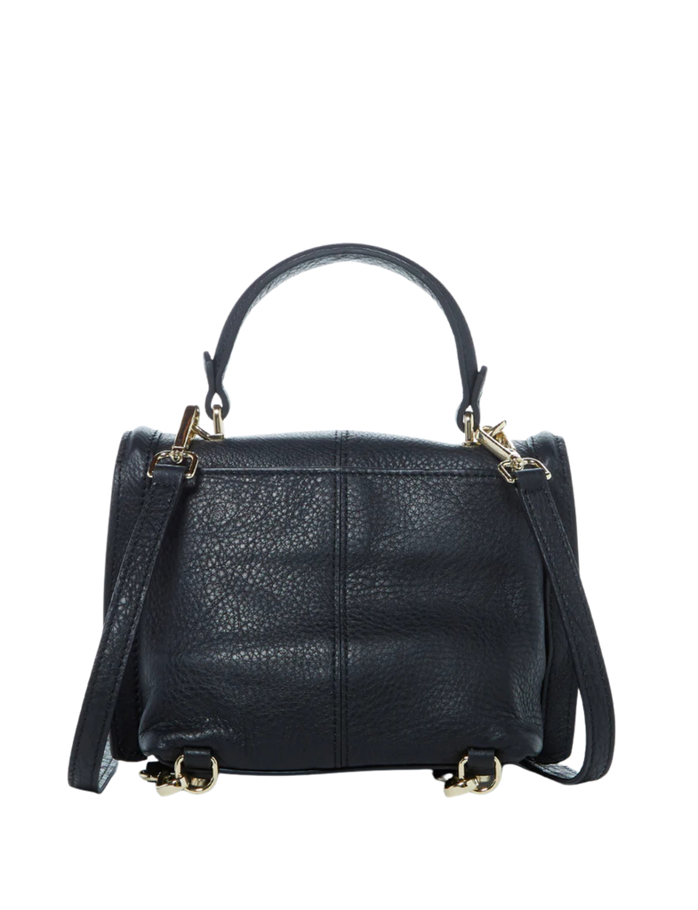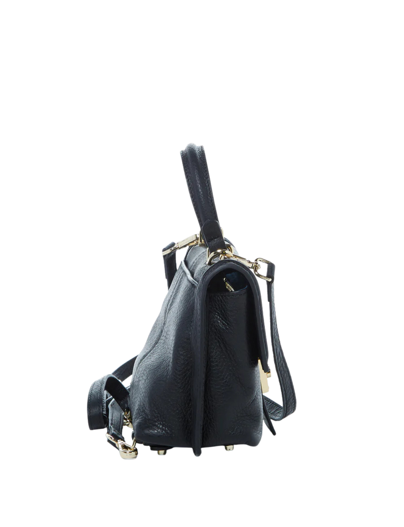 The Linda is a crossbody design that has been leveled up with the ability to convert into a leather backpack purse. This makes the Linda perfect for adapting to needs when traveling, texting and being out and about in the cold winter. This posh fashion black crossbody backpack purse features a traditional purse shape and comfortable straps. Additionally, it has a top handle if you prefer to carry it that way. Composed of soft black Italian pebble leather, the Linda is simple and effortlessly stylish. The gold push buckle lock is made with two strong magnets for extra security and helps keep the flap structured and in place is complemented by classy gold hardware. This chic addition to your wardrobe will make you feel confident - whether you’re in need of a leather crossbody bag or a leather backpack purse to take on your day.