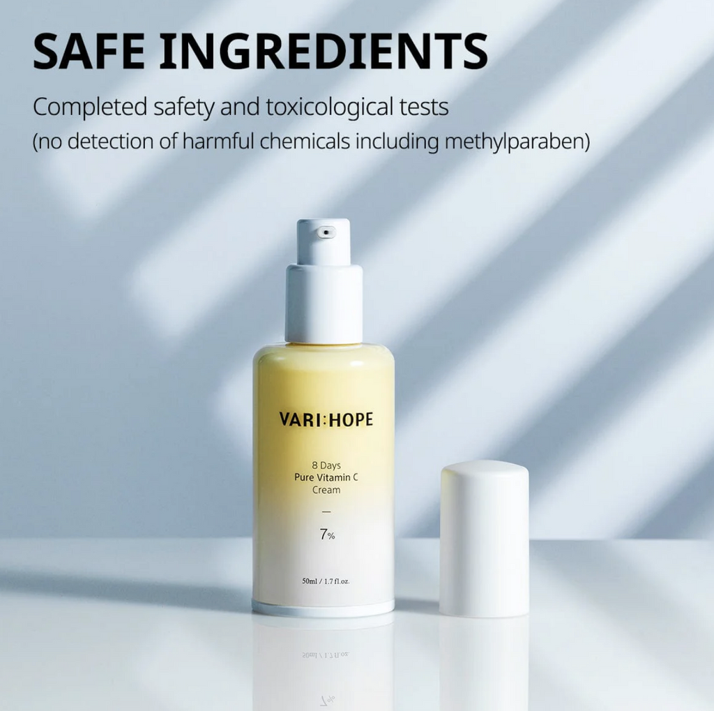 Water, Ascorbic Acid(135,000ppm), Propanediol, Caprylic/Capric Triglyceride, Propylene Glycol Dicaprylate/Dicaprate, Glyceryl Stearate Citrate, Polysorbate 60, Butylene Glycol, Glycerin, Glyceryl Stearate SE, Glutathione, Panthenol, PVP, Gluconic Acid, Chitosan, Pullulan, Sodium Gluconate, Sodium Hyaluronate, Helianthus Annuus (Sunflower) Seed Oil, Dimethicone, Ethylhexyl Salicylate, Guar Hydroxypropyltrimonium Chloride, Sodium Metabisulfite, Xanthan Gum, Cyclopentasiloxane, Dimethicone/Vinyl Dimethicone Crosspolymer, Dimethiconol, Beta-Glucan, Phaseolus Radiatus Seed Extract, Citrus Paradisi (Grapefruit) Fruit Extract, Daucus Carota Sativa (Carrot) Root Extract, Daucus Carota Sativa (Carrot) Seed Oil, Terminalia Ferdinandiana Fruit Extract, Betula Platyphylla Japonica Bark Extract, Rumex Crispus Root Extract, Ascorbyl Palmitate, Disodium EDTA, 1,2-Hexanediol, Ethylhexylglycerin, Fragrance, Limonene, Linalool.