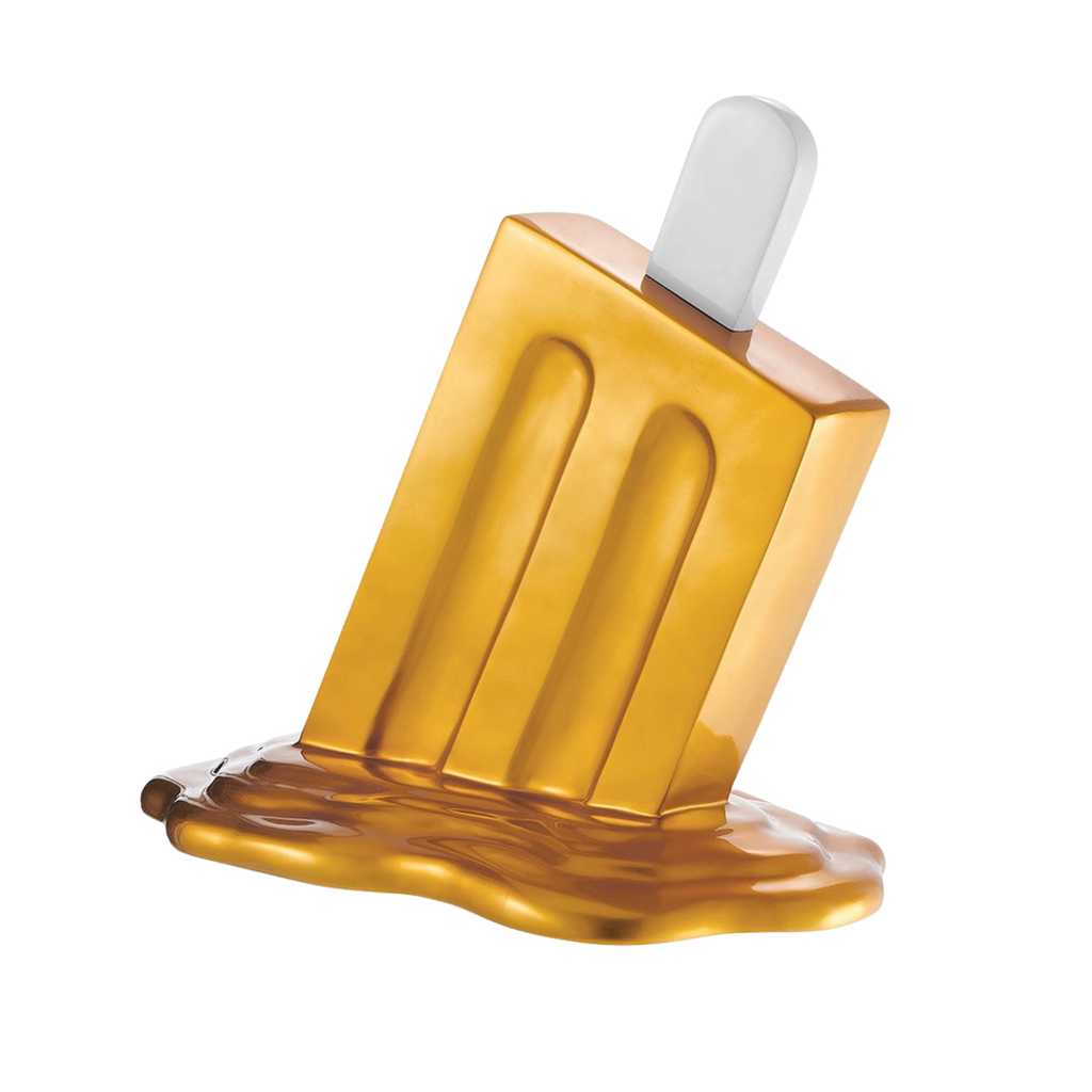 The striking metallic finish enhances its modern appeal, making it a perfect conversation piece for any room. Whether you choose the cool metallic blue or the rich golden yellow, this unique decor adds a splash of personality and fun to homes, offices, or gallery spaces. Ideal for lovers of creative and unique design, this sculpture effortlessly combines playful art with chic modernity.