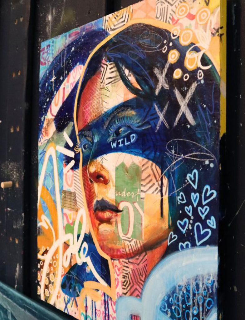 16"x20" Original Pop Art mixed media acrylic painting on gallery wrapped stretch canvas, wired and ready to hang on your wall. Painting sides are painted blue.