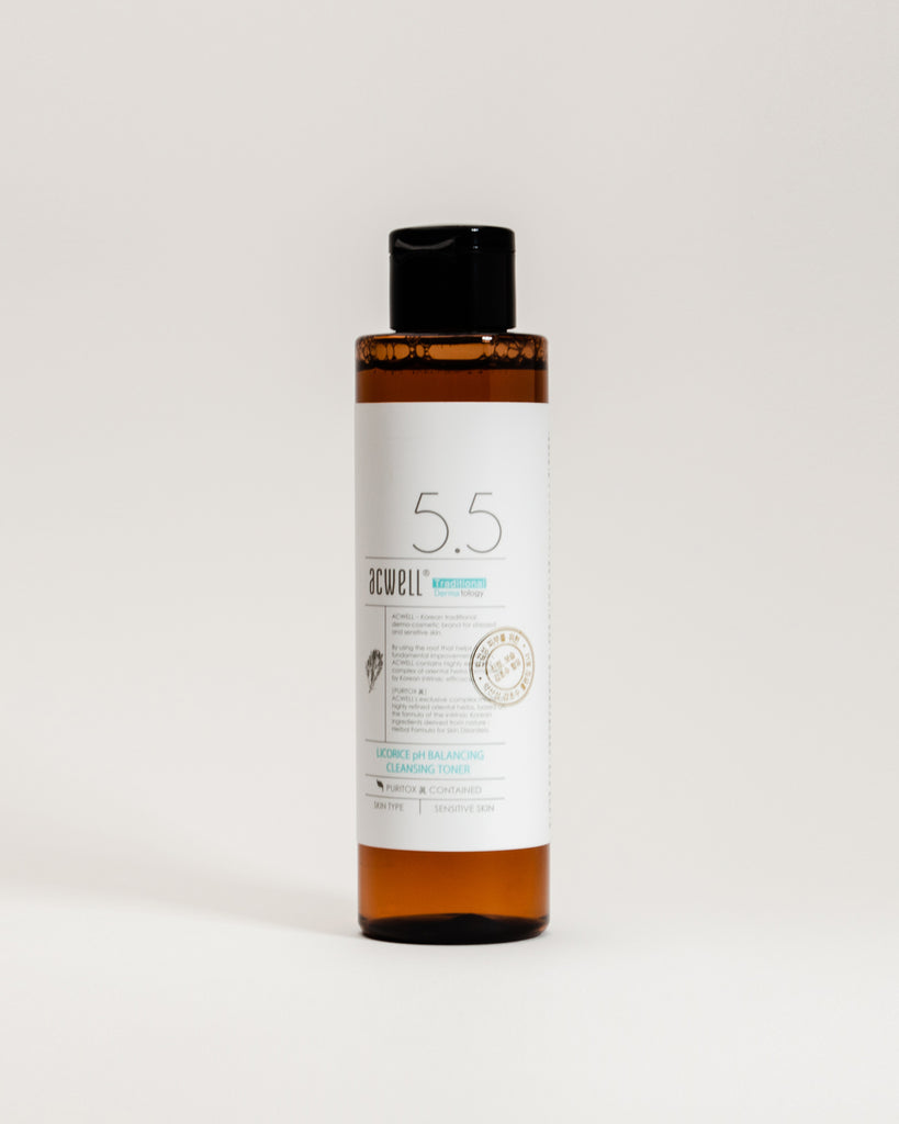 Acwell Licorice pH Balancing Cleansing Toner has a pH level of 5.5 to effectively balance your skin. Peony extract and a high concentration of licorice water - both natural brighteners - seep into skin to add an extra dose of luminosity to your complexion. Green tea extract also helps calm and reduce pigmentation, including acne scars and dark spots.Â